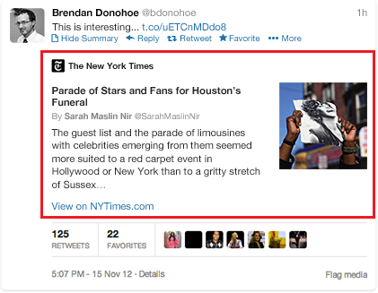 - After approval, tweet the URL and see the Card appear below your tweet.